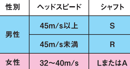 <シャフトを選ぶ目安>