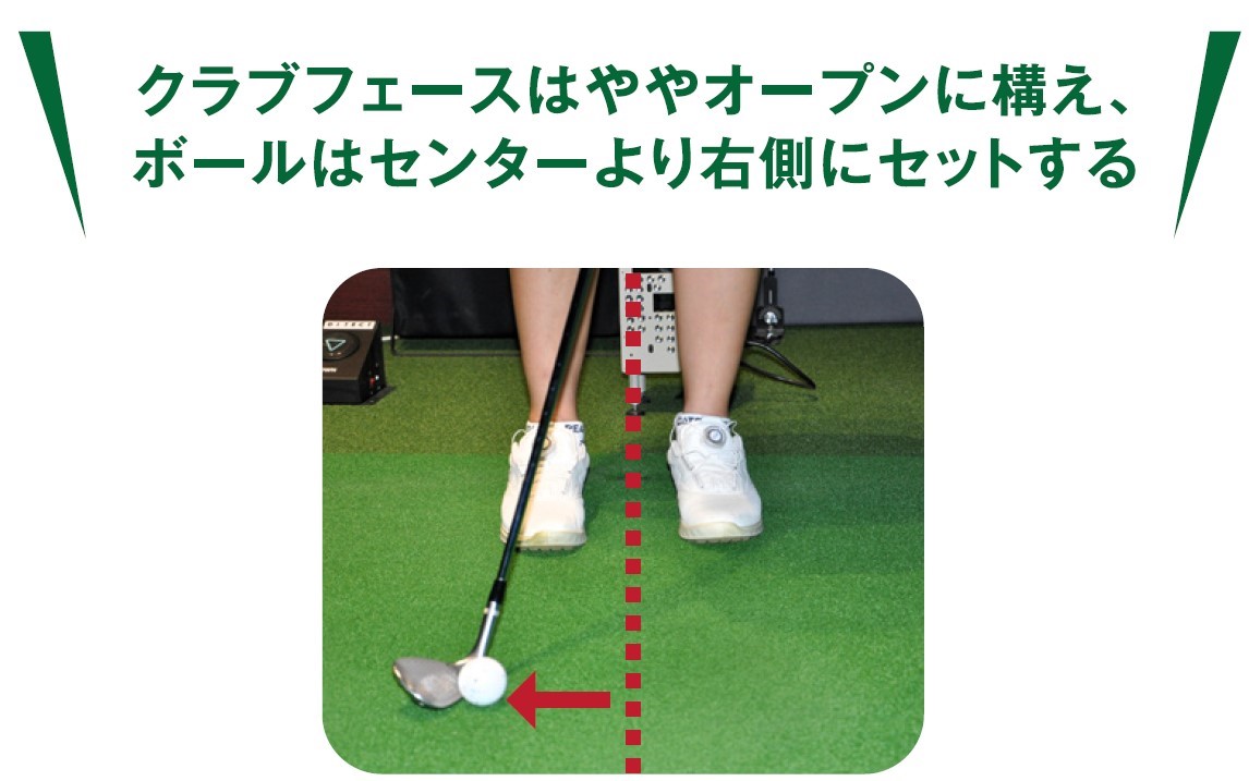 答えはもちろんノーです。バンスの形状を見ると底が丸くなっていますね。丸くなっているため、地面に引っかかることなく、芝の上を滑ってくれるのです。この滑りを利用するわけです。ですからクラブヘッドを落とす場所もボールの数センチ手前から。細かく何センチ手前なんて言いません。大まかでいいのです。これだけで緊張感がほぐれ、リラックスして打てますよね。よりバンスを滑らせたいなら、さらにフェースを開いて構えてください。フェースを開けばソールの面がもっと広く使えるようになり、よりバンスの効果を得ることができます。はじめは違和感があるかと思いますが、アドレスで構えた時にフェースが上を向いている状態をキープするイメージでテークバックし、ダウンスイングでも同じようにフェースが上を向いているようなイメージを保ったまま、ボールの手前の地面にコンタクトさせるような感覚です。これさえ理解しておけば、ざっくりやトップを防ぐことができるはずです。