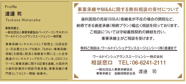 治療を継続しながらの歯科医院の売却・事業譲渡は、譲渡先の選定、交渉、契約などに専門的な知識が必要なため、院長先生が一人ですべてを行うのは現実的ではありません。歯科医院の売却では、個人立・医療法人それぞれの違いに応じた対応が求められます。売却価格に関して今回は解説していませんが、次回は「成約事例」や「トラブル事例」「希望額はどうやって決まるのか?」などを交えて解説します。