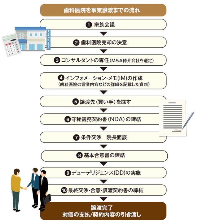 事業譲渡は、買い手が見つかれば必ずしも契約が成立するわけではありません。個人立の歯科医院の売却は手続きも煩雑で、すべて院長先生本人が一人で行うには大変な作業です。