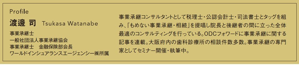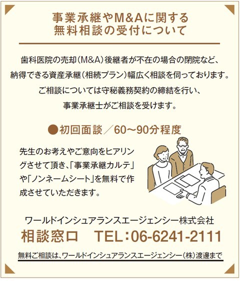 前回から歯科医院の売却について、2回にわたり解説させて頂きました。歯科医院の売却は上場企業のような何億円もの譲渡費用が発生するものではなく、譲渡金額が500〜3,000万円程度で決まるものが大半だと思います。廃院寸前で、売上が最盛期の半分ではなかなか買い手は見つかりません。将来、売却を検討する際には、『しっかりとした準備期間を設ける』『経営状況を維持する』ことが重要になります。歯科医院の売却は、単なる「引退」ではなく「一生に一度の撤退戦略」です。短期間で進めると失敗リスクが高まります。心の整理や家族の合意形成、専門家の支援が不可欠です。事業承継のアドバイザーや士業の力を借りて一生に一度の撤退戦略(歯科医院の売却)を検討してください。