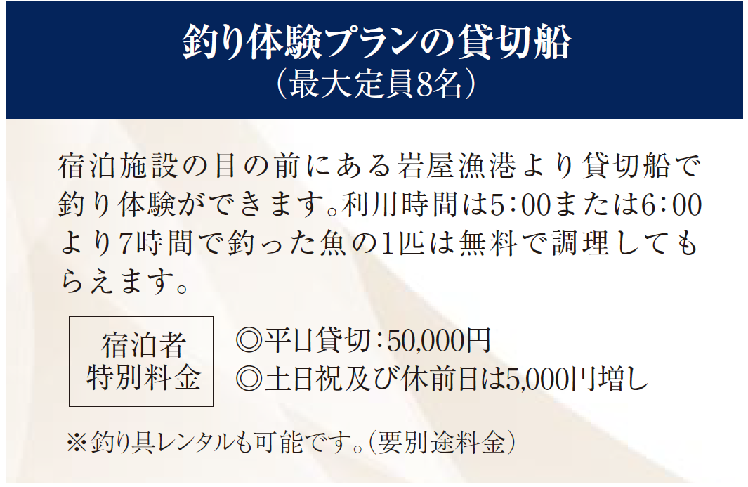 館内施設として、温泉内風呂と外湯露天風呂、プールや庭園、テラス、ツイン2部屋、ダブル2部屋、リビング、ダイニング、キッチンがあり、冷蔵庫や電子レンジ、製氷機、電気ケトル、コーヒーマシーンなども完備されており、完全プライベートを満喫できる空間と各種設備が用意されています。是非この機会に、淡路島の「岩屋温泉 絵島別庭 海と森」で、自然に囲まれた新鮮な空気と移り行く四季の風景を体感しながら、万葉の昔より御食国として平安時代まで皇室・朝廷に海水産物等を献上していた淡路島産食材のおもてなし料理と温泉入浴を満喫されてみてはいかがでしょうか。