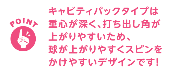 その理由は、キャビティバックは重心が深く、打ち出し角が上がりやすいため、球が上がりやすくスピンをかけやすいデザインとなっているためです。また、オフセンター(ボールがクラブフェースの中心から外れた位置でヒットすること)で打った際の許容範囲の広さも注目点で、ミスショットに対して非常に寛容で、打点が少しずれてもボールが比較的安定して飛んでいくため、初心者から上級者まで多くのゴルファーにとって使いやすいクラブといえるのです。
