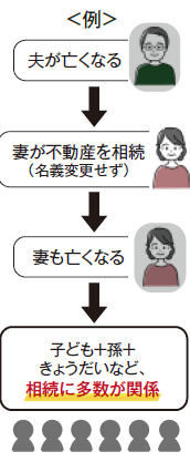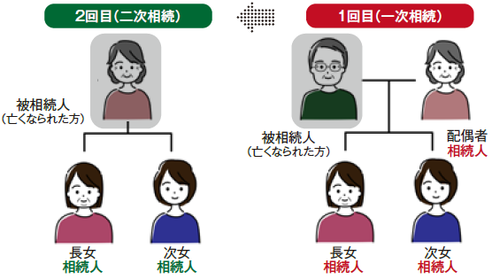 不動産などは一次相続後、名義変更をせずに放置しておくと、二次相続で「相続人の数」が倍増してしまうケースもあります。