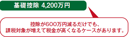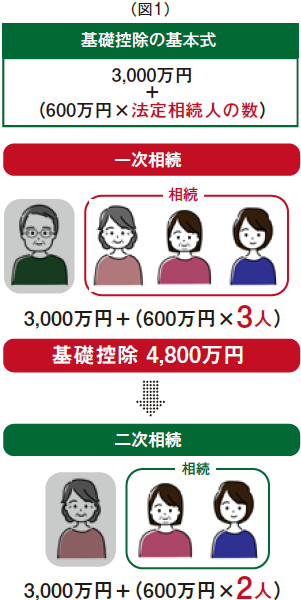 相続税の基礎控除額は「相続人の数」に比例して増えるため、配偶者が亡くなるとその分の控除額は減ってしまいます。(図1)