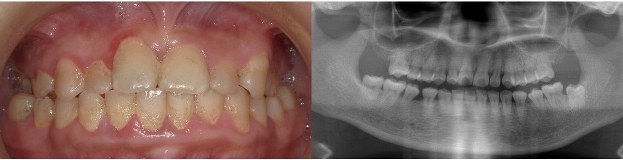 子どもにおいて歯周炎は極めて稀ですが、全身の病気に伴って生じることがあります(図9)。そこで、歯周炎を呈する子どもの症例に遭遇した際には、小児歯科専門医にご柑談いただきたいと思います。