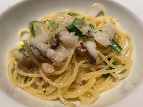 オイルベースのパスタで、上に青柚子がふってあるので、柑橘の香りを楽しみながら頂きました♪