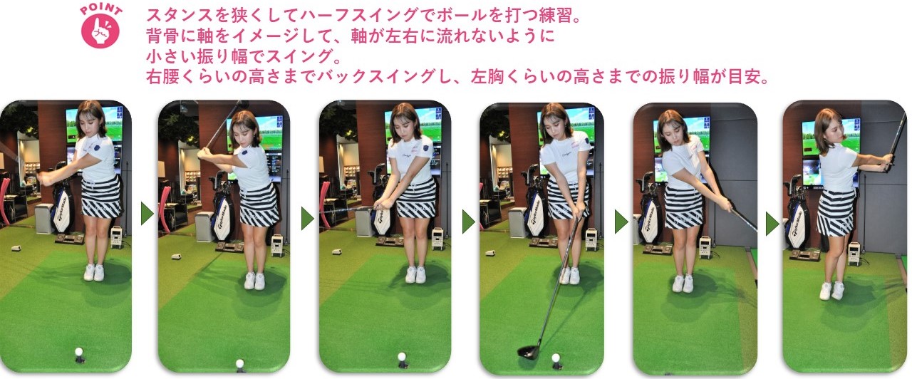 ■スタンス幅を小さくしてハーフスイングでボールを打つ